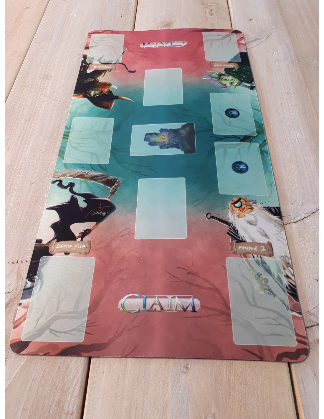 Neoprene playmat incorporating both base games as well as the Claim: Reinforcements – Maps expansion. (Since you can mix and match all expansions, it technically supports all expansions but it has special places for the locations from the Maps expansion.)