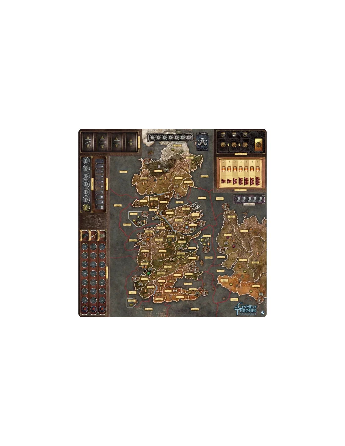 Measuring 3’ by 3’ (90cm by 90cm), the Mother of Dragons Deluxe Gamemat displays the entirety of the Seven Kingdoms, along with the western coast of Essos and other game elements introduced in Mother of Dragons Expansion.