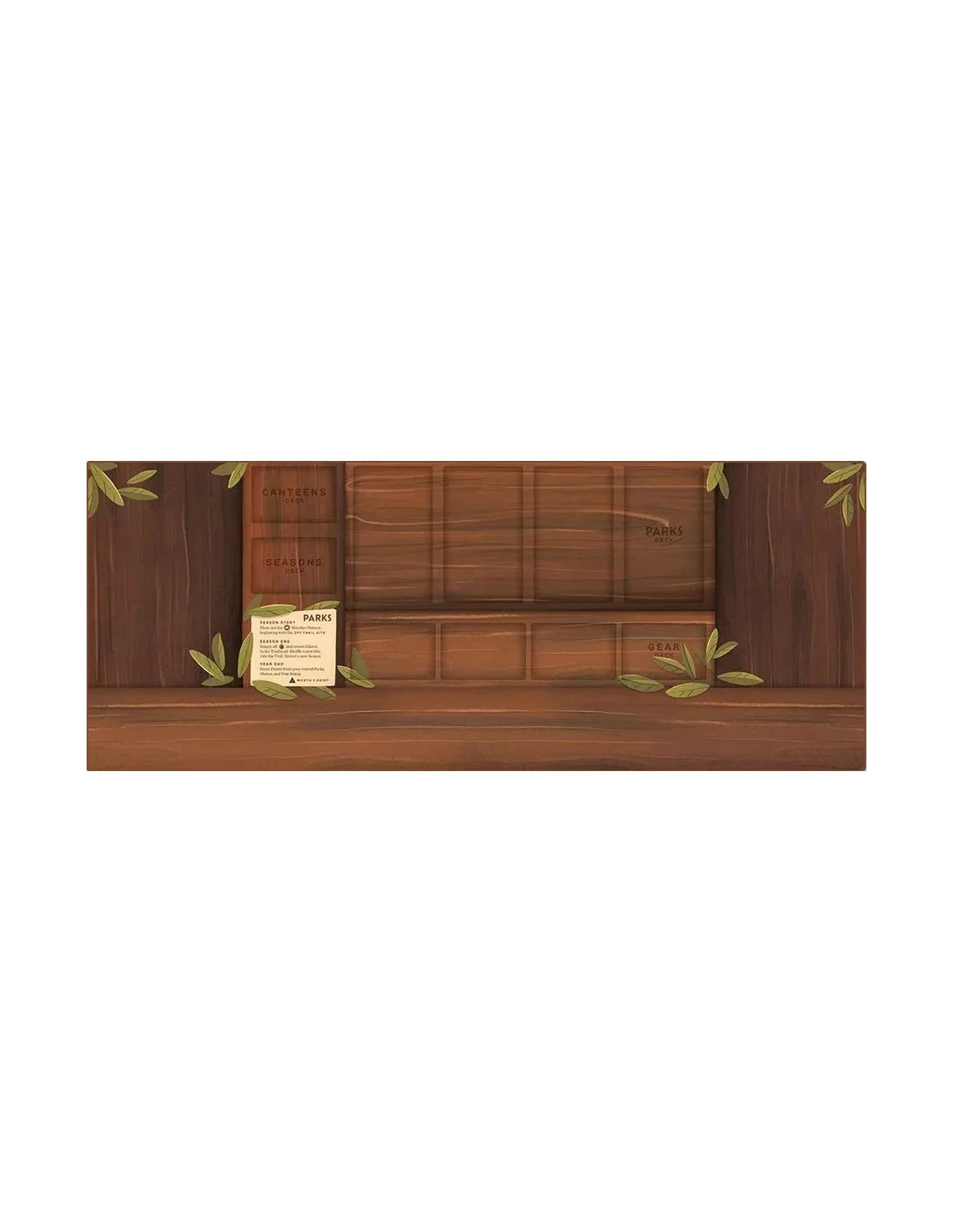 A 12×30 inch premium neoprene playmat that replaces the board for PARKS and adds space for the trail and resource trays. The playmat is 2mm thick and will have a stitched edge.