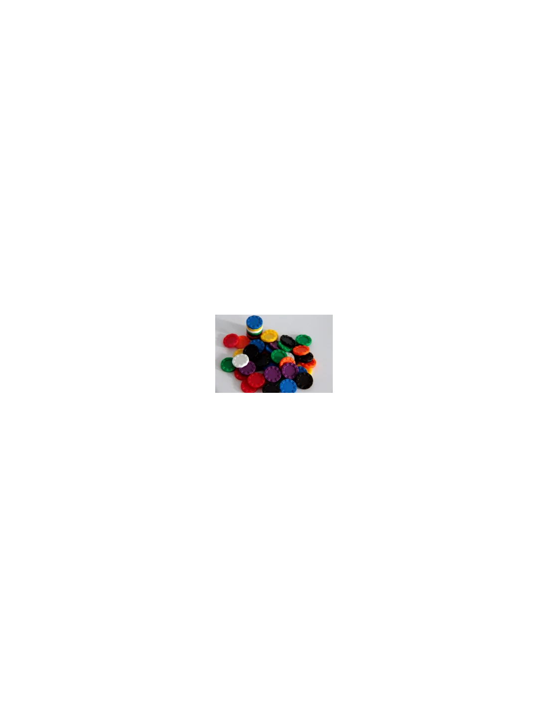 Stapelbare fiches met een diameter van 15mm. Door het opstaande randje blijven deze fiches op elkaar liggen.