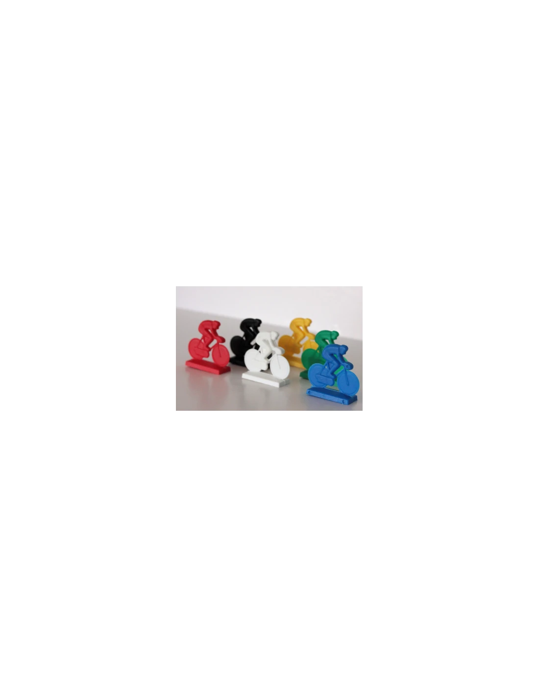 Een wielrenner van 30x28x10 mm. De wielrenner is van kunststof en beschikbaar in 6 kleuren.